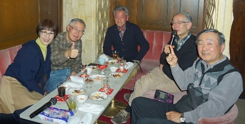 綾乃はカラオケの機械を入れ替えたため、歌唱後の採点が以前の機械とは大幅に変わっていて、90点以上が乱発状態だった。特に最初の一巡では5人全員が94点だった。以前はいつもは80点台だった篤君も高得点に気分を良くしていた。 しかし、95点以上を出すのはなかなか難しかったが、跡部君と塚田君は95点以上を何回か叩き出していた。流石だ。 塚田君はいつものように23:11の身延線に乗るため11時少し前に退出し、残りのメンバーも11時20分頃の解散となった。 次回は正家君も参加できることを願っている。 |
