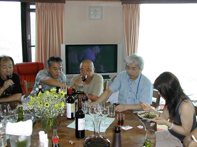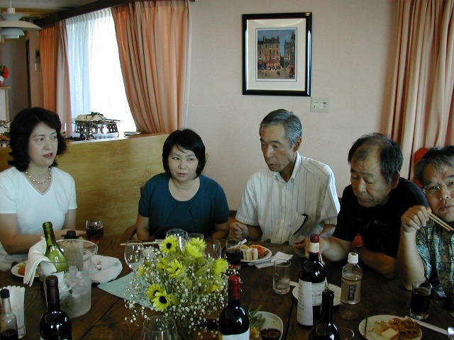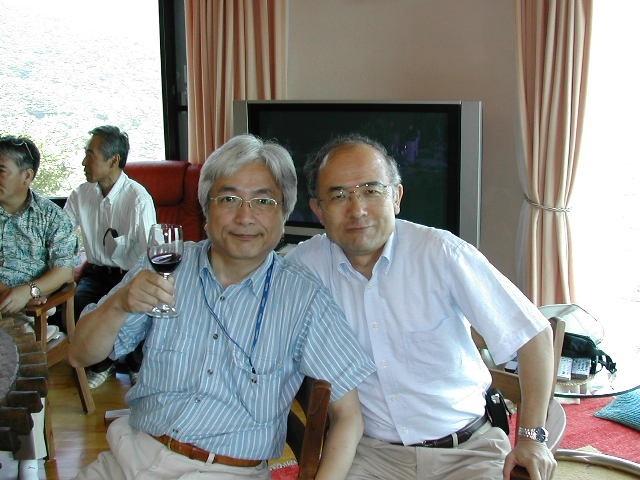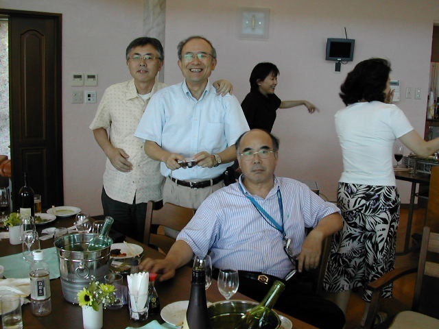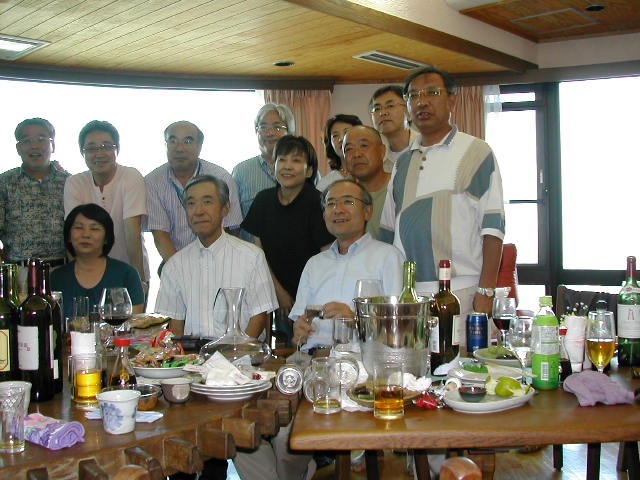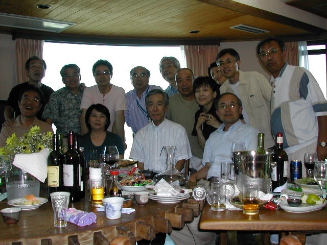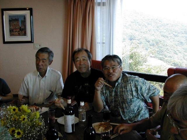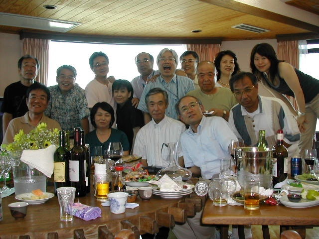 甲府一高応援団吹奏楽部2年の8月(1967)の定期演奏会後から3年の8月(1968)の定期演奏会終了後までの1年間、吉井政樹君は部長として、また、小林正家君は正指揮者として、伝統ある一高ブラスバンド部を率いてきた。 近年その両名が癌に冒され、それぞれに闘病生活を送っている状況を鑑み、手塚希久雄君と窪田実君の発案で、古き良き仲間達が集まり、二人のための激励会(於:武内邸)を開催することとなった。 正家君は奥様とともに出席されたが、山梨中央病院へ入院中の吉井君は体調不良のためやむなく欠席となってしまった。直前まで出席に意欲を持っていた吉井君だっただけに非常に残念であった。 |