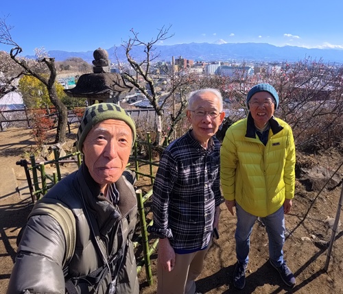 今回の山歩クラブは少し趣を変えて、跡部君の提案によるお寺巡りを行った。 甲府五山の中の長禅寺、能成寺、東光寺の3寺と来迎寺、誓願寺、帰命院、善光寺の全7つのお寺巡りと、酒折の不老園の梅見を楽しむ散策であった。 【ルート】甲府駅北口~長禅寺~来迎寺~誓願寺~能成寺~帰命院~東光寺~奈良屋(昼食)~善光寺~不老園~酒折駅→甲府駅 お寺巡りの途中の昼食では、善光寺駅近くの「奈良屋」で美味しいそばやうどんを頂くこともできた。 また、気温も高く風もなく、初春を感じる素晴らしい天候に恵まれ、とても気持ち良くお寺巡りと梅見をすることができた。 梅を見ながらの一杯と、甲府駅前のいつもの四文屋での打ち上げで、本当に楽しい一日を過ごすことができた。 打上会では社会人になった若い頃の各自の色々な出来事の告白などもあって、いつも以上に盛り上がった打上会であった。 また、お寺巡りや神社巡りやサクラの花見など、楽しい山歩クラブを計画したい。 総歩数:20,015歩(家を出てから帰宅まで) |